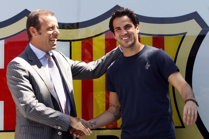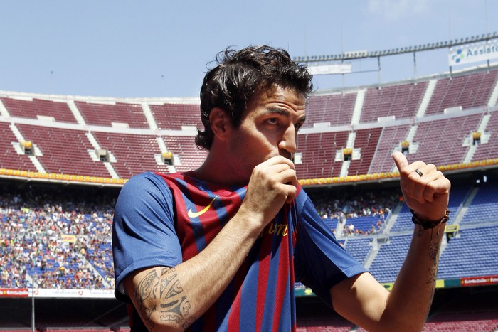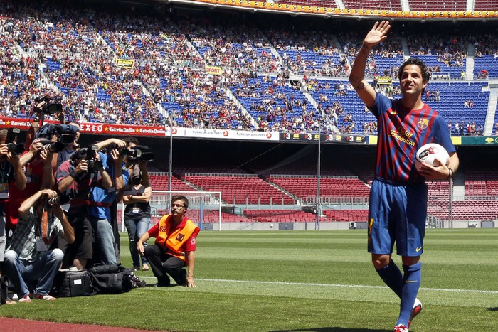 Сеск Фабрегас поставил подпись под соглашением с «Барселоной» В «Арсенал» Фабрегас пришел в 2003 году, до этого выступал за вторую и третью команды «Барселоны» В «Барселоне» Фабрегас будет выступать под четвертым номером «Потребовалось много лет, месяцев, дней, чтобы добраться сюда, – сказал Фабрегас .на презентации на «Камп Ноу». – Как приятно быть дома после восьми лет отсутствия! Это была самая сложная задача в моей жизни. Были долгие недели, месяцы переживаний. Не сказал бы, что это время – худшее в моей жизни, но это были трудные дни, я не знал, каким будет мое будущее. Казалось, этому никогда не будет конца». В составе «Арсенала» Фабрегас стал обладателем кубка Англии в 2005 году После ухода из «Арсенала» капитана команды, француза Патрика Виейра в «Ювентус», стал основным центральным полузащитником, а после конфликта Вильяма Галласа с Арсеном Венгером в 2008 получил капитанскую повязку, став одним из самых молодых капитанов в истории клуба Фабрегас стал чемпионом Европы 2008 года в составе сборной Испании Фабрегас стал чемпионом мира 2010 года в составе сборной Испании Фабрегас признался, что ему было стыдно, когда товарищи по сборной надели на него майку «Барселоны» во время празднования победы на чемпионате мира. «Мне было стыдно, когда на меня надели майку «Барселоны». Я не ожидал такого, но это было частью праздника. Надеюсь, в «Арсенале» все поймут правильно», - сказал тогда Сеск. «Барселона» Лео Месси два года подряд выбивала «Арсенал» Фабрегаса из Лиги чемпионов Фабрегас возвращается на «Камп Ноу» «Мы заплатили за Фабрегаса €29 млн, а не €40 млн, – раскрыл детали сделки президент «Барсы» Сандро Роселль. – Мы так и говорили, что не готовы платить больше, чем €30 млн, так что у нас есть все основания быть довольными. В дальнейшем возможны еще две наши выплаты по €5 млн».