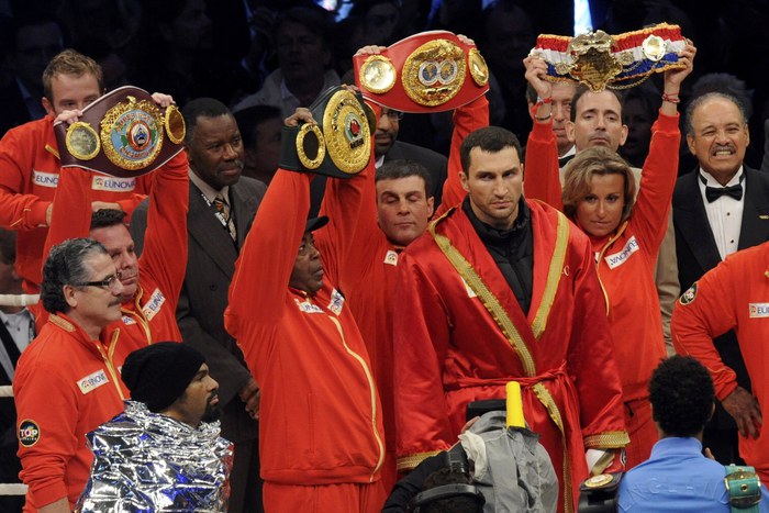Владимир Кличко в объединительном бою за титулы чемпиона мира по версиям IBF, WBA, WBO победил британца Дэвида Хэя. Поединок продлился все отведенные 12 раундов, по итогам которых единогласным решением судей победа была присуждена украинцу.