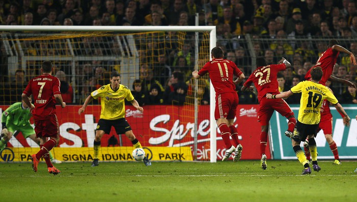 Дортмундская «Боруссия» обыграла «Баварию» в матче, ознаменовавшимся градом бананов в адрес вратаря мюнхенцев Мануэля Нойера. В концовке встречи Арьен Роббен не реализовал пенальти.