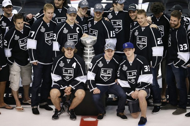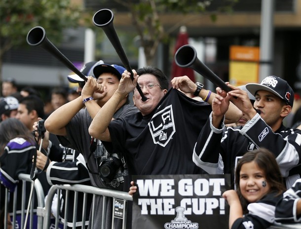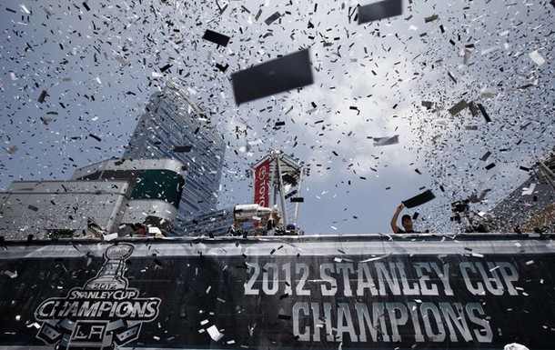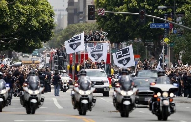 Хоккеисты «Лос-Анджелеса», впервые в своей истории ставшие обладатели Кубка Стэнли, проехали с трофеем по улицам города, а затем их чествовали на арене.
