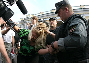 После июльского митинга в защиту 31-й статьи Конституции, которые оппозиция проводит каждый месяц, в котором есть 31-е число, в интернете был выложен видеоролик, в котором показано, как милиция разгоняет акцию у Гостиного Двора в Санкт-Петербурге. В ролике один из милиционеров обзывает участников акции и бьет одного из них дубинкой. На запястье у милиционера украшение из жемчуга, за что прапорщик получил прозвище «жемчужного». В блогосфере проходила кампания по опознанию этого милиционера.