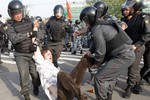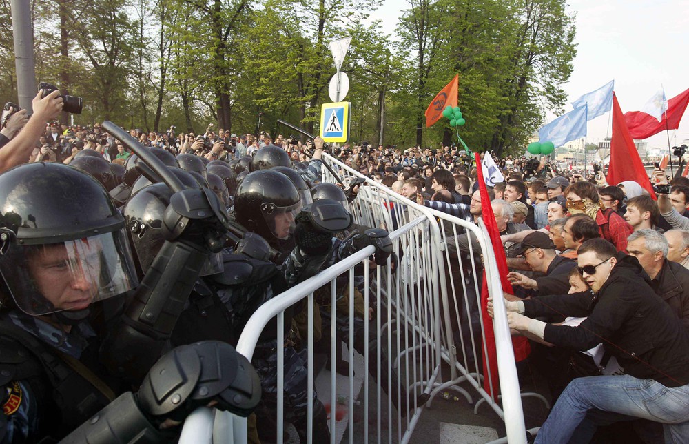Поначалу участники акции были явно растеряны и не знали что делать. С разных сторон было слышно то «Стоим!», то «Бежим!». Но когда появился газ, мирная демонстрация превратилась в настоящий протест, в ОМОН полетели куски асфальта, файеры и пластиковые бутылки.