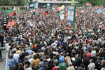 Когда колонна дошла до Болотной площади, вдалеке стояла еще пустая сцена.