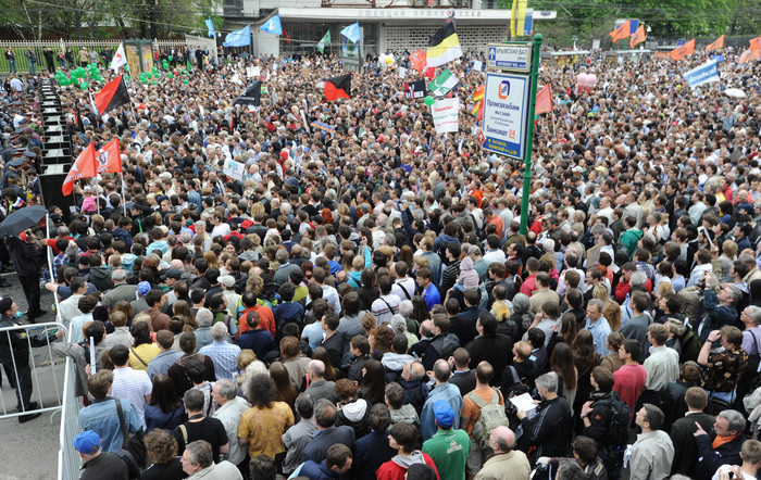 В толпе было множество флагов - от вполне реальных движений - «Солидарности» и «Левого фронта» до неожтиданных - ЮКОСа и Facebook. отдельными колоннами шли националисты и их идейные противники, сторонники ЛГБТ. Несколько десятков человек образовали колонну в поддержку арестованных «Pussy Riot».