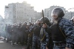 Демонстранты стояли и на противоположной стороне канала. Но на Болотную никто не шел - люди уперлись в кордоны ОМОН перед Большим каменным мостом. Кордонов было сразу несколько - солдаты-срочники, ОМОН, еще солдаты-срочники, еще ОМОН и за ними - ярко-оранжевые поливальные машины.