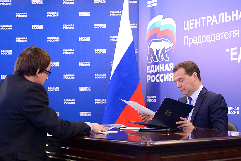 После трехчасового ожидания в пресс-зале включили трансляцию из приемной, где с лидером партии общались заранее отобранные «просители». Первым к Медведеву обратился Юрий Борисов из «Национальной ассоциации журналистов» города Владимира.