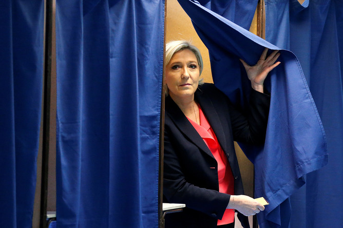 Судя по этой фотографии с одного из французских избирательных участков, перспективы у Ле Пен не очень радужные.