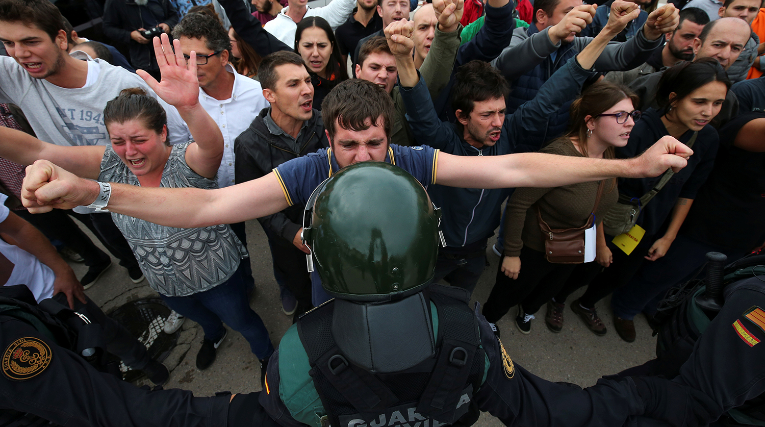 Catalan police challenge Spanish Guardia Civil officers over violence against voters #CatalanReferendum pic.twitter.com/GBecZzsJJx
