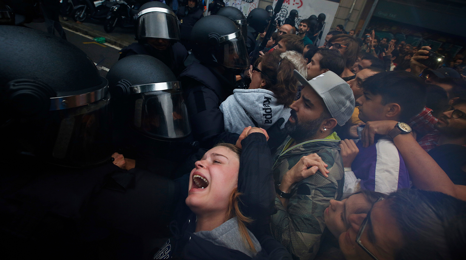 Столкновения с испанской полицией на улицах Барселоны, 1 октября 2017