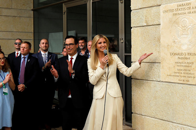 Кушнер снова говорит о том, что решение США о переносе посольства принесет мир в регион. Иванка слушает речь своего мужа, едва сдерживая слезы.
