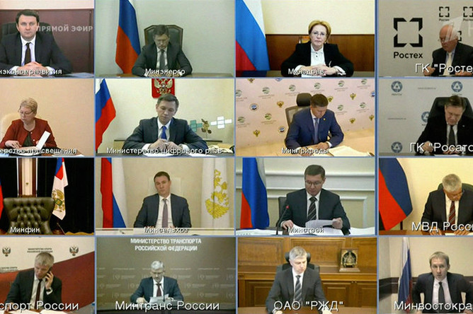 Параллельно показывают кресла вице-премьеров и губернаторов на связи. Кресло минфина пустое.