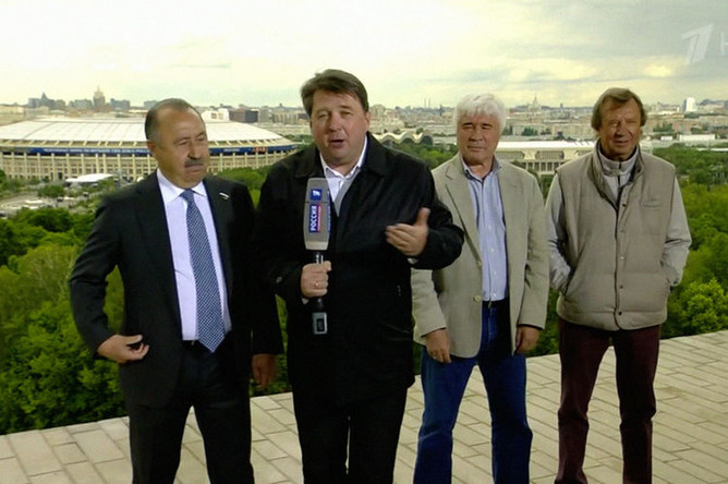 И переходим к главной теме этого лета — Чемпионату мира по футболу. Ведущие предлагают «перенестись» в фан-зону на Воробьевых горах.