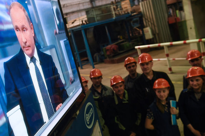 Путин говорит о росте заработных плат и даже реальных доходов населения. «Конечно, не каждый человек это на себе ощущает, но это — объективная статистика», — говорит президент.