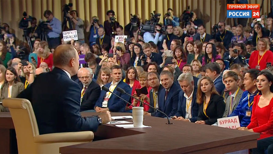Что, сегодня прозвучали все ожидаемые вопросы, касательно здравоохранения, мусора, нацпроектов, доходов граждан и правоохранительной системы. Немалая часть, предсказуемо, затрагивала международную повестку. На этом направлении тоже обошлось без сюрпризов. Единственным рекордом сегодняшнего диалога российского лидера с прессой стало число заявленных участников — 1895 журналистов.