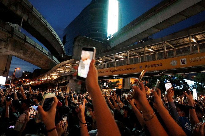 «Мы собираемся бороться за демократию, бороться за свободу, бороться за равенство нас как людей. Мы больше никогда не будем кланяться, падать ниц и ползать. Среди людей не должно быть тех, кто выше остальных», — приводит The New York Times слова одного из лидеров протеста Джастина Самутпракана.