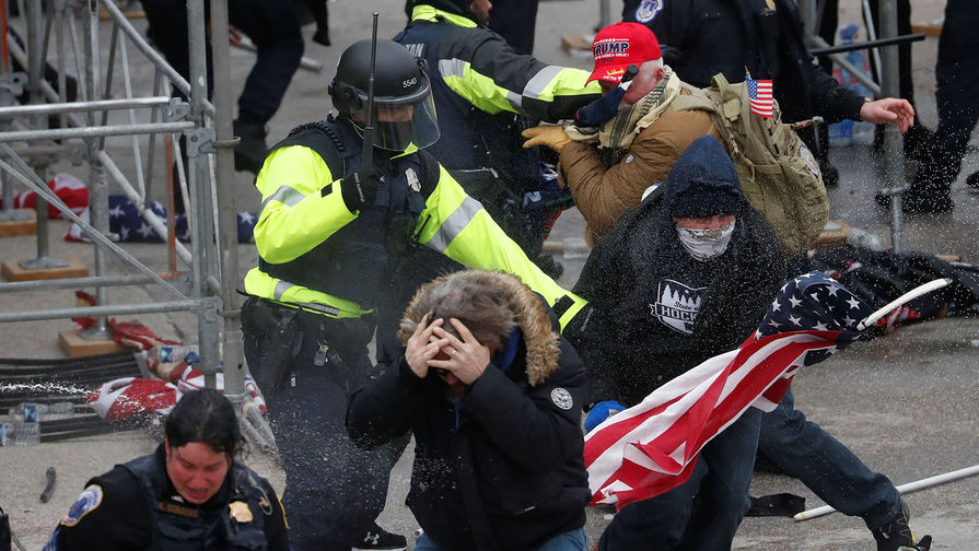 Во время массовой акции протеста против итогов выборов, согласно которым победил демократ Джо Байден, сторонники республиканца Дональда Трампа помешали конгрессменам провести утверждение Байдена на должность главы государства.