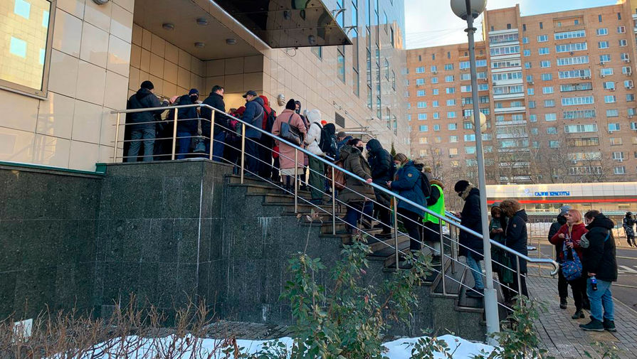 Журналисты у входа в здание Мосгорсуда в день заседания по делу Алексея Навального, 2 февраля 2021 года