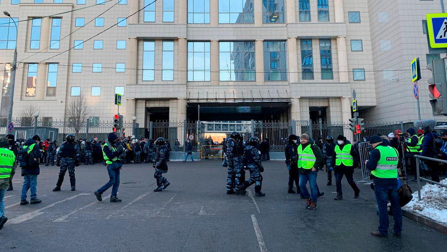 Ситуация около Мосгорсуда перед началом заседания по делу Алексея Навального, 2 февраля 2021 года