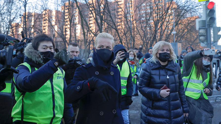 Юлия Навальная около здания Мосгорсуда перед началом заседания по делу Алексея Навального, 2 февраля 2021 года