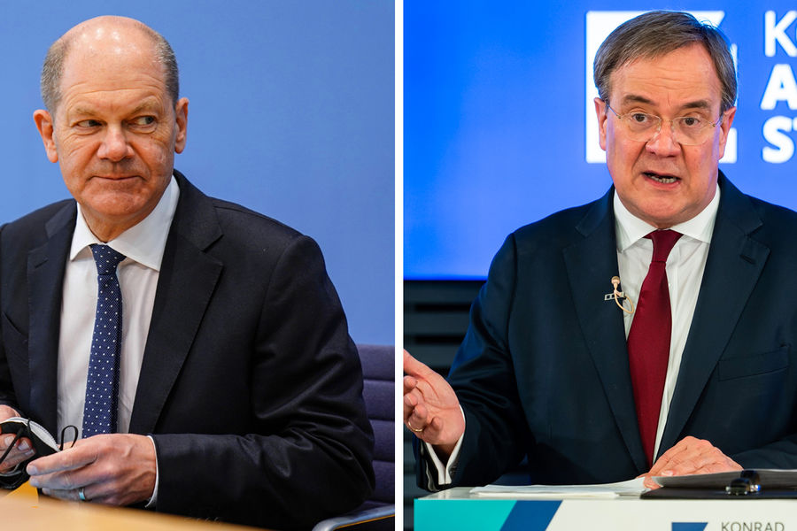 Олаф Шольц от «Социал-демократической партии» (слева) и Армин Лашет от правящего консервативного альянса ХДС/ХСС (справа)