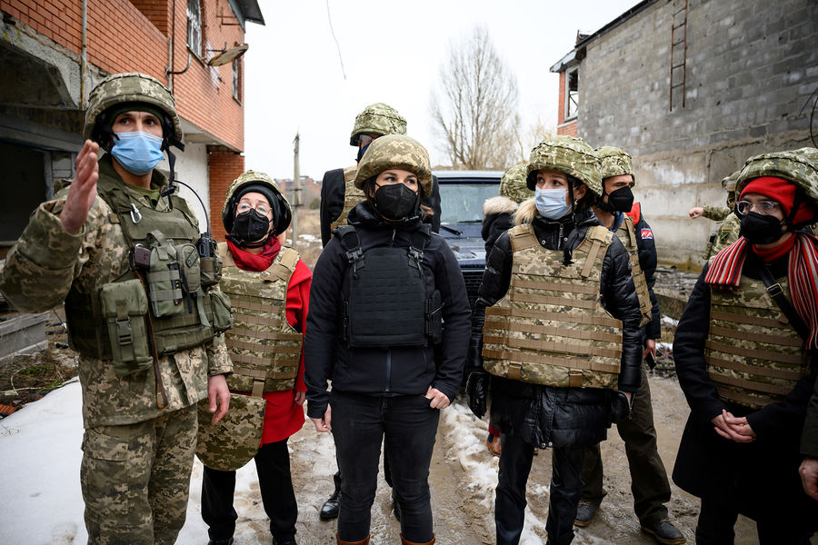 Министр иностранных дел Германии Анналена Бербок во время визита в село Широкино в Донецкой области на юго-востоке Украины, 8 февраля 2022 года
