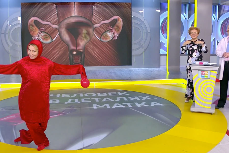 Один из самых знаменитых выпусков «Жить здорово!» вышел 13 февраля 2019 года и был посвящен здоровью женской матки. После краткого предисловия в исполнении самой Малышевой в студии тогда появилась актриса Светлана Галка, известная, в частности, по «Большой разнице», где ей приходилось перевоплощаться в разных реальных и выдуманных персонажей.