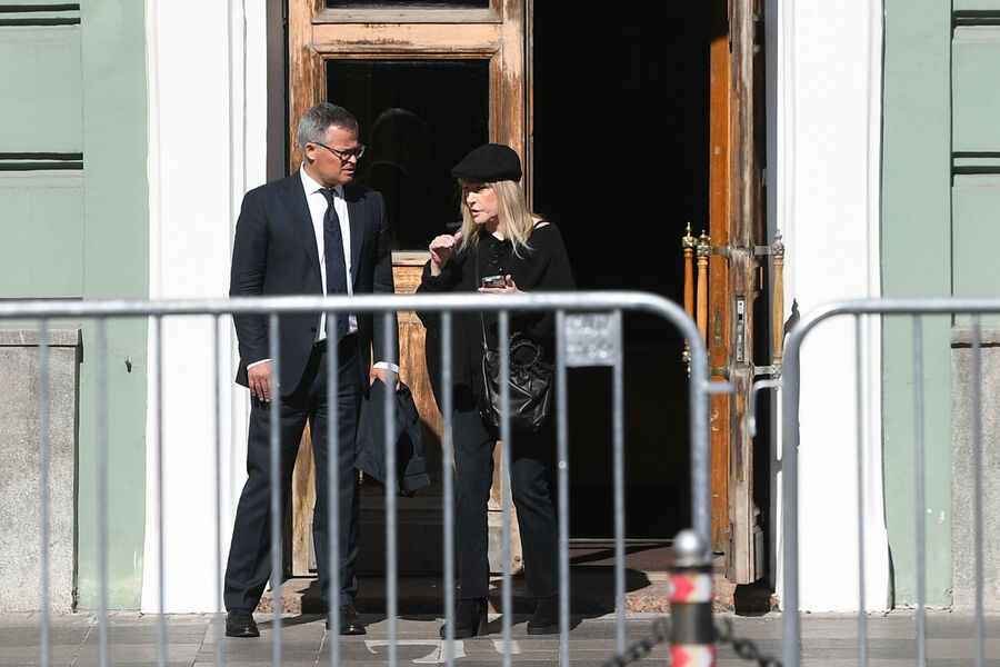 Дочь первого президента СССР Михаила Горбачева Ирина Горбачева-Вирганская (в центре) и личный переводчик Михаила Горбачева, журналист Павел Палажченко (слева) на церемонии прощания, 3 сентября 2022 года