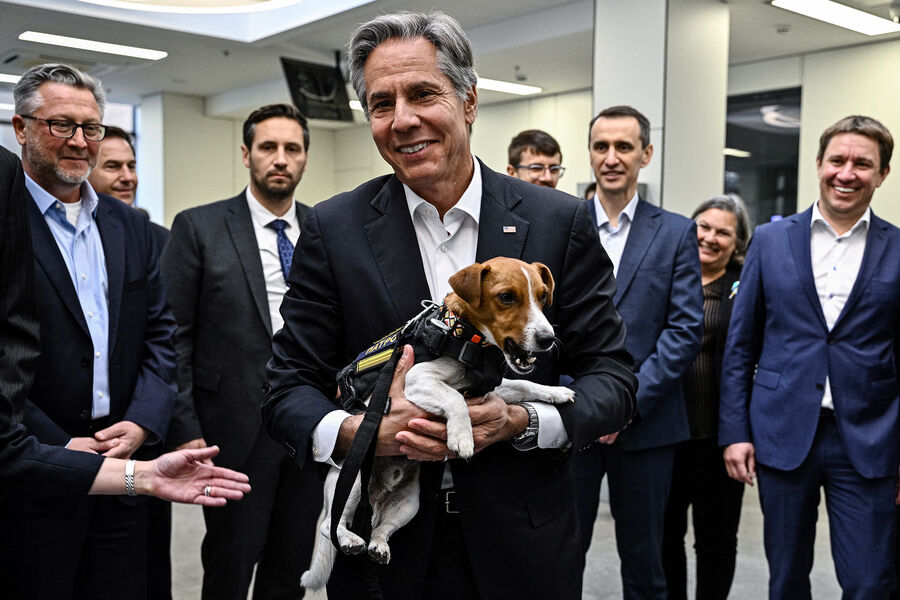 Агентство Bloomberg уточнило, что во время визита Энтони Блинкен около получаса пообщался с министром иностранных дел Украины Дмитрием Кулебой. Он также посетил детскую больницу в Киеве, где встретился с некоторыми пациентами. Согласно данным издания, он также встретился с Патроном — джек-рассел-терьером, «который помог украинским военным найти более 200 мин, установленных российскими войсками».