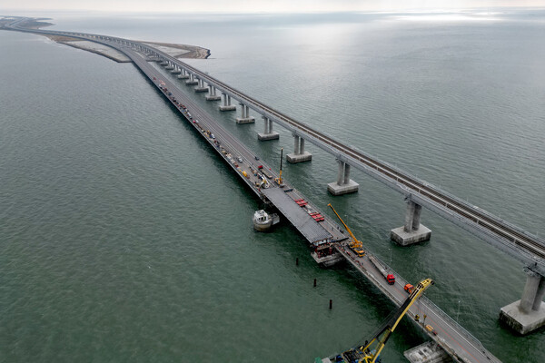 По правой автодорожной стороне Крымского моста запущено движение после ремонта из-за взрыва в начале октября, сообщается на сайте ФКУ Упрдор «Тамань».