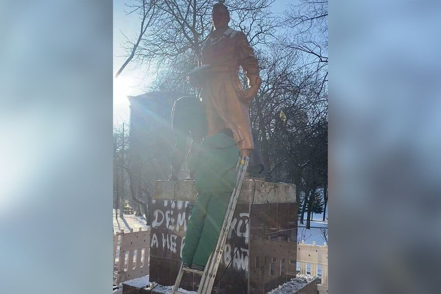 В Киеве начали сносить памятник советскому летчику Валерию Чкалову, сообщает украинское издание «Страна.ua».