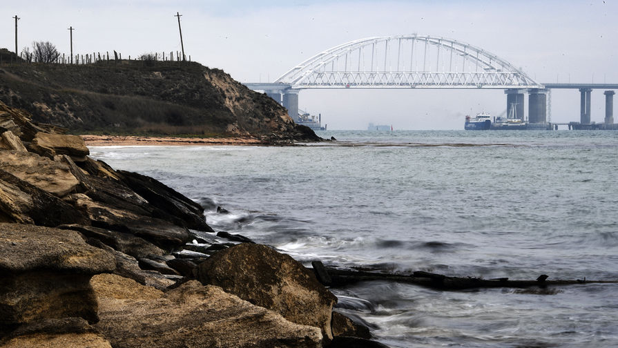 Суда под аркой Крымского моста в Керченском проливе, ноябрь 2018 года