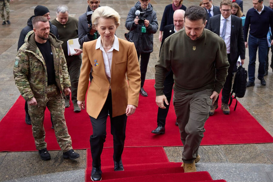 Президент Украины Владимир Зеленский провел телефонный разговор с председателем Еврокомиссии Урсулой фон дер Ляйен. По его словам, в ходе диалога стороны обсудили антироссийские санкции ЕC и процесс евроинтеграции Киева.