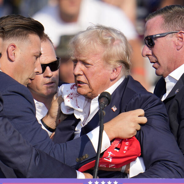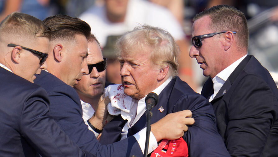 Во время предвыборного выступления Дональда Трампа в городе Батлер (штат Пенсильвания) произошла стрельба. Она началась спустя несколько минут после начала выступления Трампа, который вновь претендует на выдвижение в президенты. После первых глухих выстрелов он схватился за ухо и спрятался за трибуну, а сотрудники спецслужб стали закрывать его своими телами. Когда стрельба стихла, Трамп в окружении охранников поднялся и показал несколько ободряющих жестов на камеру и избирателям. Затем его в плотном кольце агентов увели со сцены в машину.