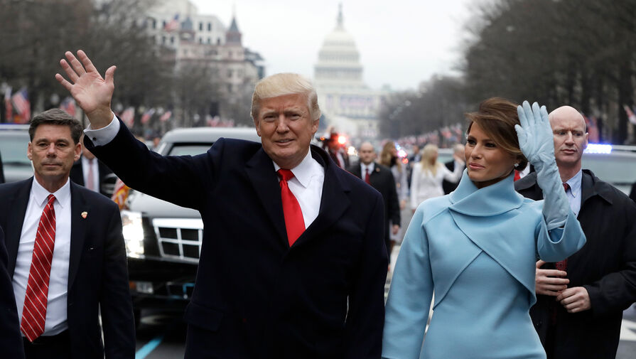 Дональд Трамп с женой Меланьей во время инаугурационного парада на Пенсильвания-авеню в Вашингтоне, 20 января 2017 года
