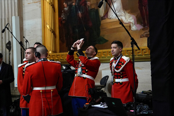 Участники оркестра морской пехоты США «The President's Own» перед 60-й президентской инаугурацией в Ротонду Капитолия США в Вашингтоне в понедельник, 20 января 2025 года