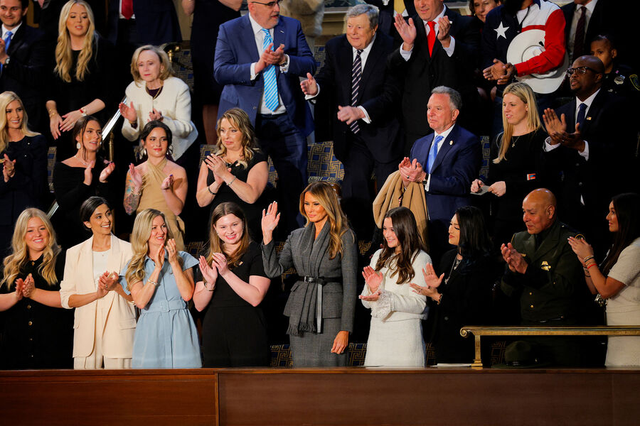 Мелания Трамп также присутствует в конгрессе. Первая леди приветствовала законодателей и судей Верховного суда.