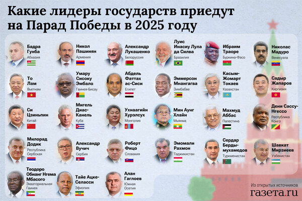 Российские власти особенно ждут председателя КНР Си Цзиньпина. Песков заявил, что он точно прибудет в Москву. Для него организуют специальный визит, так как его приезд в российскую столицу имеет большое значение. Также подтвердили участие в параде главы или представители как минимум 18 стран.