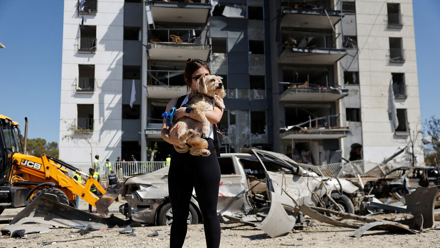 Девушка с собакой на фоне разрушенного дома в израильском городе Беэр-Шева, 20 июня 2025 года