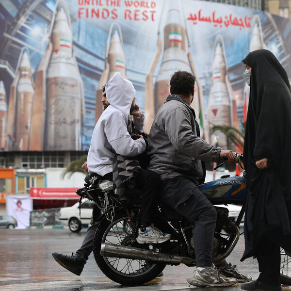 Билборд с изображением иранских ракет в Тегеране, март 2026 года