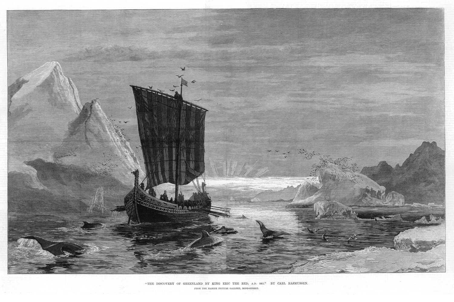 Рыжий провел на острове три года, но так и не встретил там людей. По окончании изгнания он вернулся в Исландию и стал призывать викингов переселиться на новый остров, который назвал «зеленой землей». Из Исландии на новые территории отправились 25 кораблей, но добрались всего 14. На острове было основано Восточное поселение, а позже — Западное, на месте нынешней столицы Гренландии. Из Норвегии и Исландии завозили древесину, железо и пищевые продукты. Из Исландии также экспортировали моржовые бивни, бечевку, овец, кожу тюленей и шкуры рогатого скота.