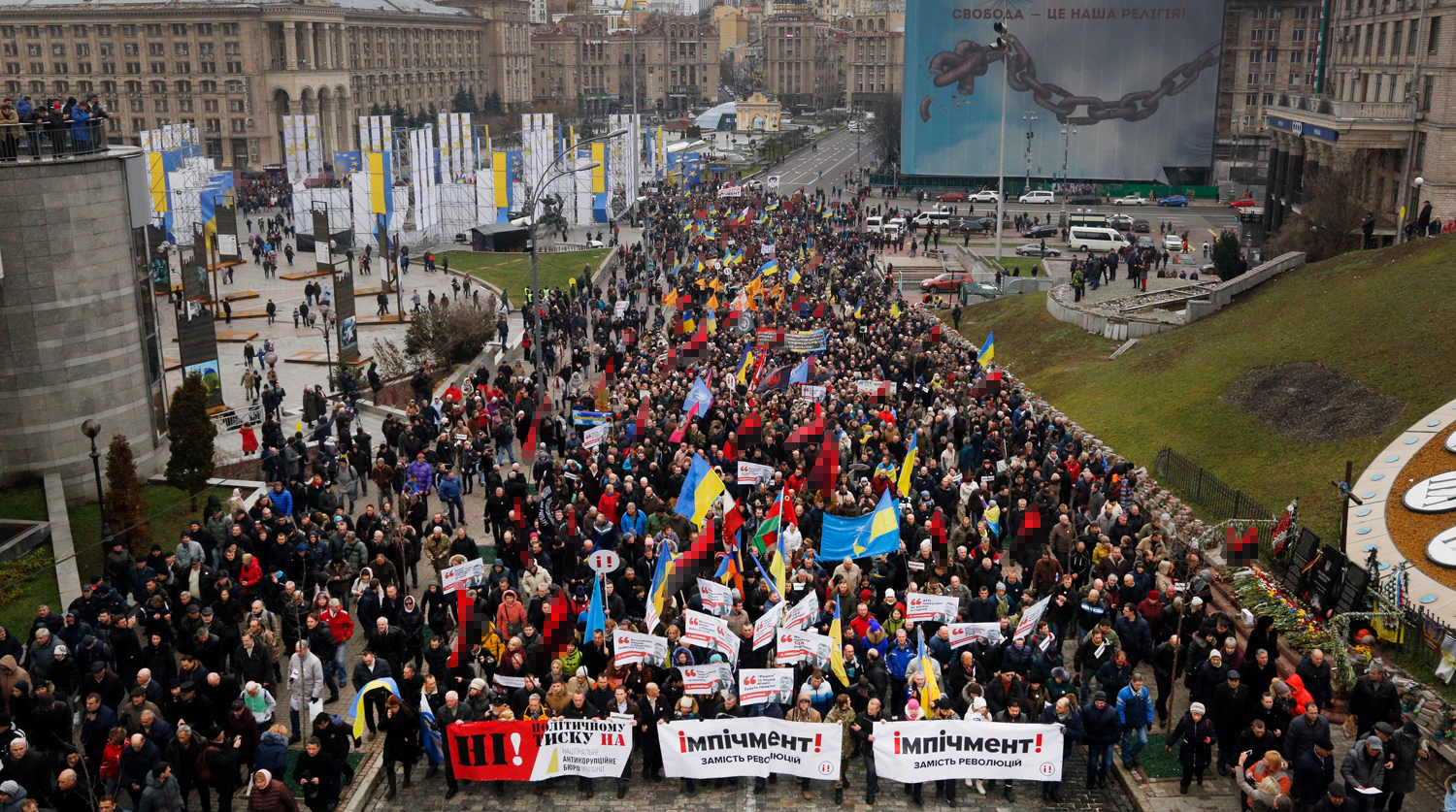Протестующие заявляют, что положение на Украине можно улучшить путем «народного импичмента» действующего президента страны Петра Порошенко.
