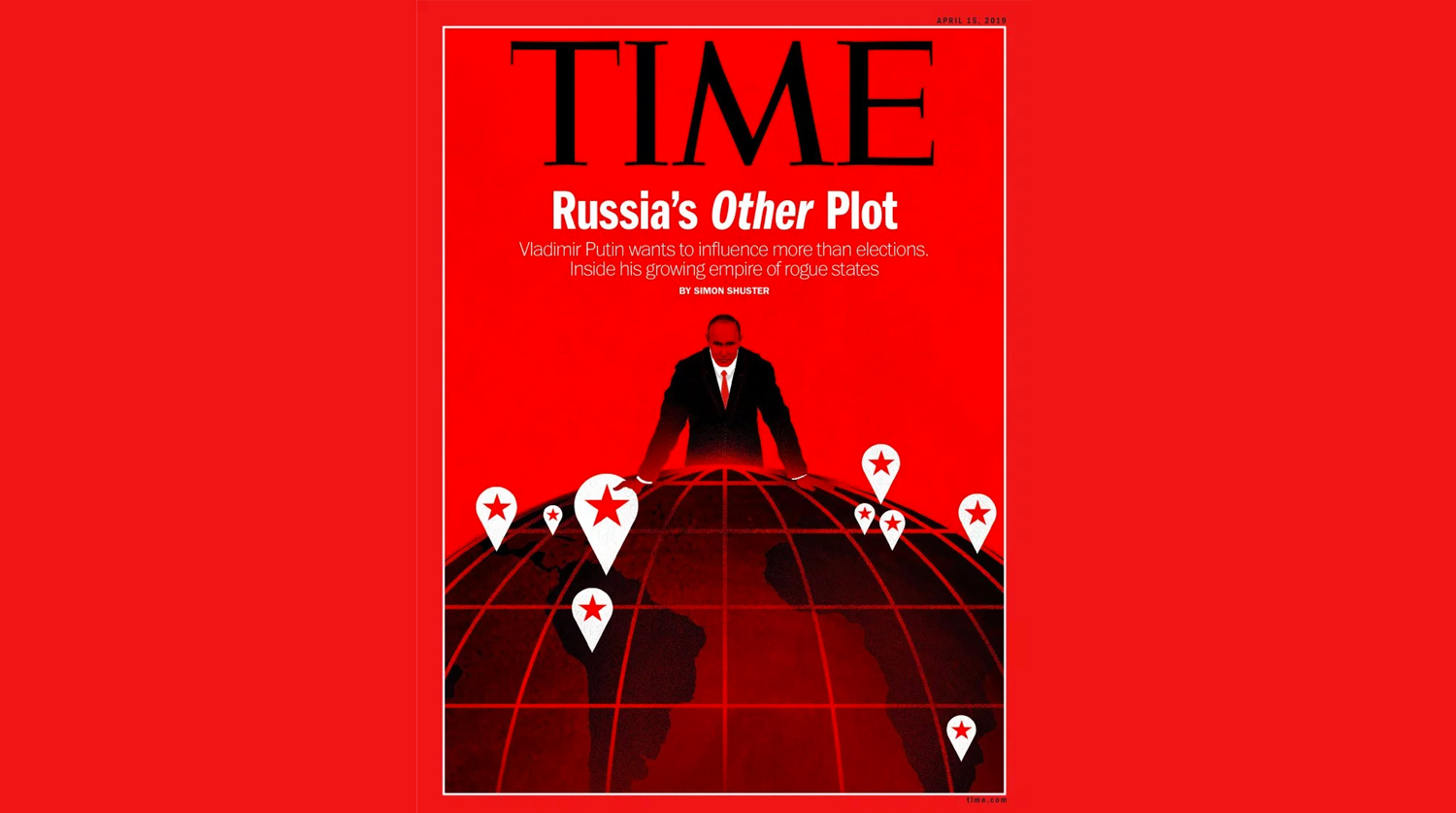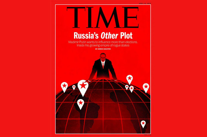 «Новый тайный план России. Владимир Путин хочет распространить свое влияние не только на выборы», — гласит подзаголовок на обложке.
