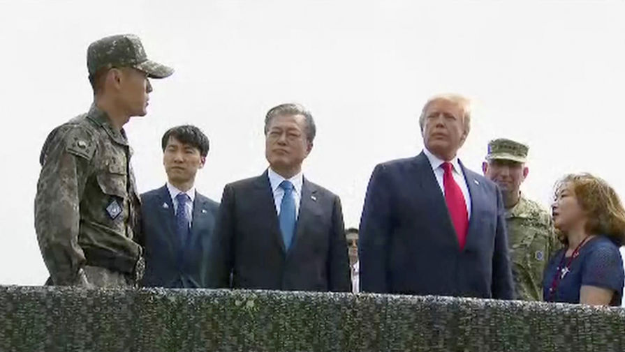 Президент США Дональд Трамп прибыл в демилитаризованную зону (ДМЗ), где он должен встретиться с северокорейским лидером Ким Чен Ыном. Об этом сообщает CNN.