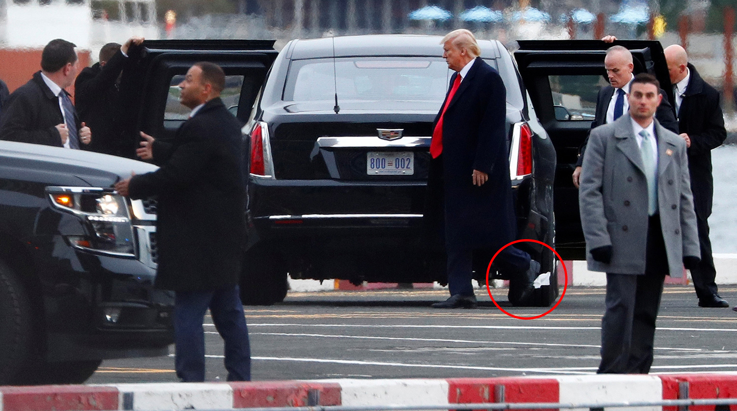 Как отмечается, журналисты увидели туалетную бумагу на ноге президента, когда он шел из лимузина на посадку, чтобы улететь из американского города 13 ноября. Трамп с куском белой бумаги, прилипшей к ноге, прошел до самолета. Бумага отлипла от него лишь, когда он начал подниматься на борт.