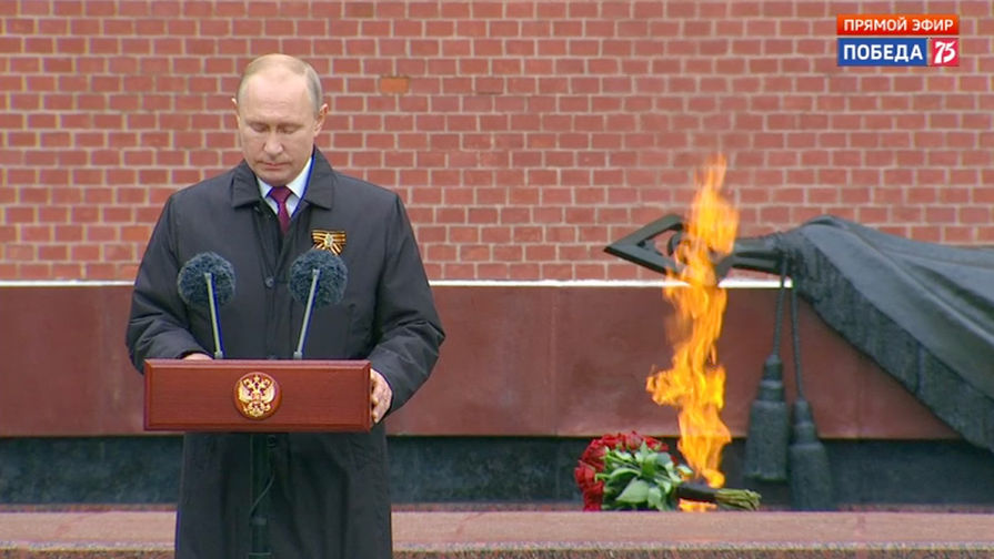 Он отметил, что заслуги советских солдат невозможно оценить. Также президент объявил минуту молчания в знак памяти погибших в ВОВ.
