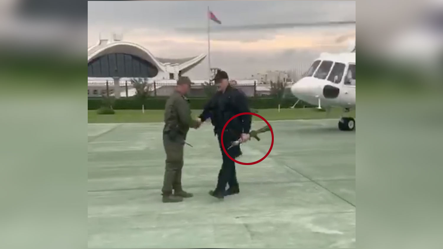На видео, опубликованном каналом, Лукашенко выходит из белого самолета с красной и зеленой полосками, на котором написано «Belarus». На президенте черный бронежилет, а в руках — оружие, похожее на автомат.