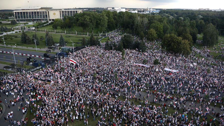В Минске многотысячная толпа протестующих подошла к Дворцу независимости, резиденции президента Белоруссии Александра Лукашенко. Об этом пишет ТАСС.