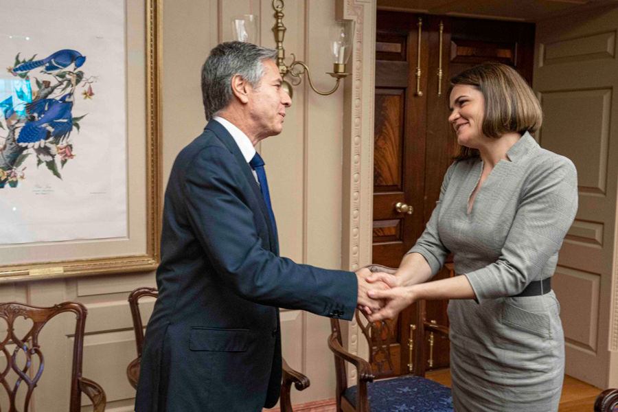 Бывший кандидат президенты Белоруссии Светлана Тихановская встретилась в Вашингтоне с госсекретарем США Энтони Блинкеном, заместителем госсекретаря Викторией Нуланд и советником Госдепартамента США Дереком Шолле. Об этом Тихановская сообщила в своем Telegram-канале.