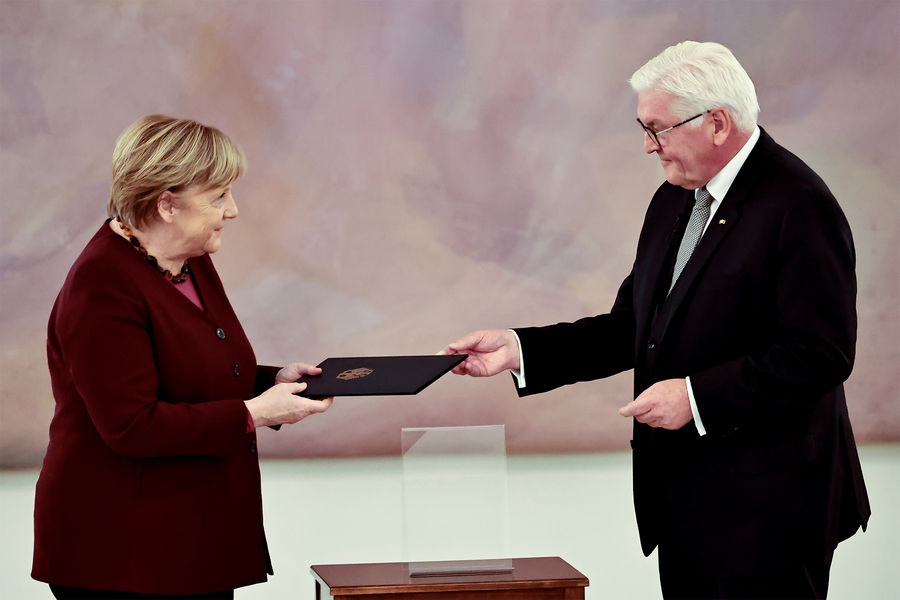 Президент Германии Франк-Вальтер Штайнмайер вручил канцлеру страны Ангеле Меркель уведомление об окончании ее полномочий. Об этом сообщает РИА «Новости».