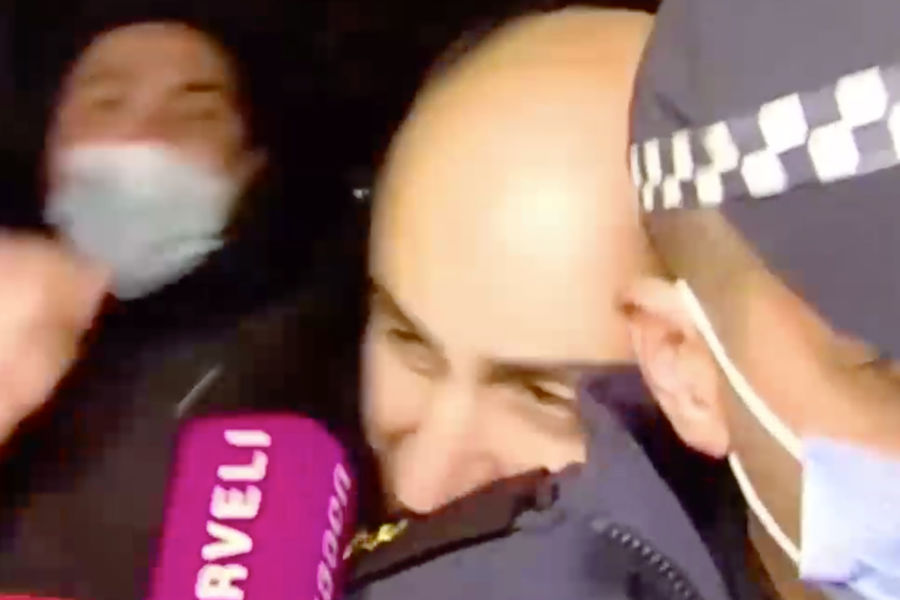 Нападение попало на видео. На кадрах видно, как неизвестный прорывается через полицейский кордон и бьет Мелия по голове. После этого мужчину задерживают.